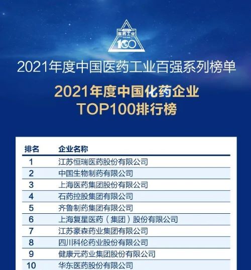 此前,永利皇宫官网医药已经连续多年入选“中国化药企业TOP100排行榜”,自2018年起名列首位,今年再度蝉联榜首。