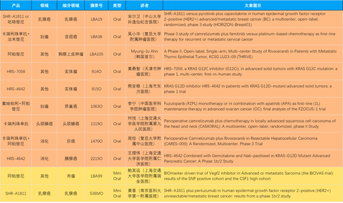 本届大会,作为中国医药创新代表性企业的永利皇宫官网医药共有46项抗肿瘤领域研究成果入围,包括4项最新突破性摘要(LBA)1,共涉及14项创新药。其中9项入选口头(Oral)报告,2项入选简短口头报告(Mini Oral),32项研究接收为壁报(Poster),3项研究接收为电子壁报(E-Poster),覆盖食管胃癌、妇科肿瘤、肝癌、乳腺癌、胰腺癌、肺癌、肉瘤、胆道癌、头颈鳞癌、前列腺癌、甲状腺癌等十余个领域。14款创新药包括10款已上市产品:注射用瑞康曲妥珠单抗(艾维达®,研发代号:SHR-A1811)、注射用卡瑞利珠单抗(艾瑞卡®)、苹果酸法米替尼胶囊(艾比特®)、甲磺酸阿帕替尼片(艾坦®)、马来酸吡咯替尼片(艾瑞妮®)、阿得贝利单抗注射液(艾瑞利®)、羟乙磺酸达尔西利片(艾瑞康®)、氟唑帕利胶囊(艾瑞颐®)、瑞维鲁胺片(艾瑞恩®)、海曲泊帕乙醇胺片(恒曲®),以及4款未上市产品,包括KRASG12C抑制剂HRS-7058、KRASG12D抑制剂HRS-4642、抗PD-L1/TGF-βRII双抗瑞拉芙普-α注射液(SHR-1701)、Trop-2 ADC SHR-A1921。2类新药盐酸伊立替康脂质体注射液(II)(越优力®)及国内首仿药昂丹司琼口溶膜(艾其速®)各有1项研究入选。