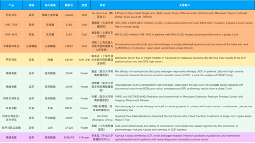 在胸腺上皮肿瘤、头颈鳞癌、肉瘤、前列腺癌、甲状腺癌等其他多个疾病领域,卡瑞利珠单抗、阿帕替尼、瑞维鲁胺、阿得贝利单抗、法米替尼、HRS-7058、HRS-4642等抗肿瘤创新药相关研究一共入选了4项口头报告、1项简短口头报告、4项壁报、1项电子壁报,彰显了永利皇宫官网医药强大的研发实力。此外,海曲泊帕和昂丹司琼口溶膜分别在防治化疗导致的血小板减少和恶心呕吐方面各有1项研究入选壁报。